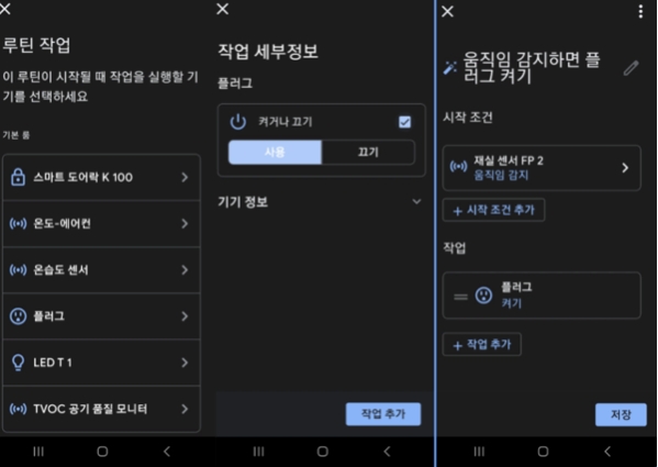 루틴 작업에서 사용할 기기인 “플러그” 선택 >> 작업 세부 정보 선택 (사용)