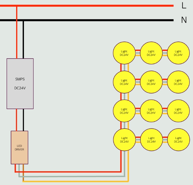 LED 스트립 드라이버는 24V 출력이므로 이에 맞는 조명 사용 필요