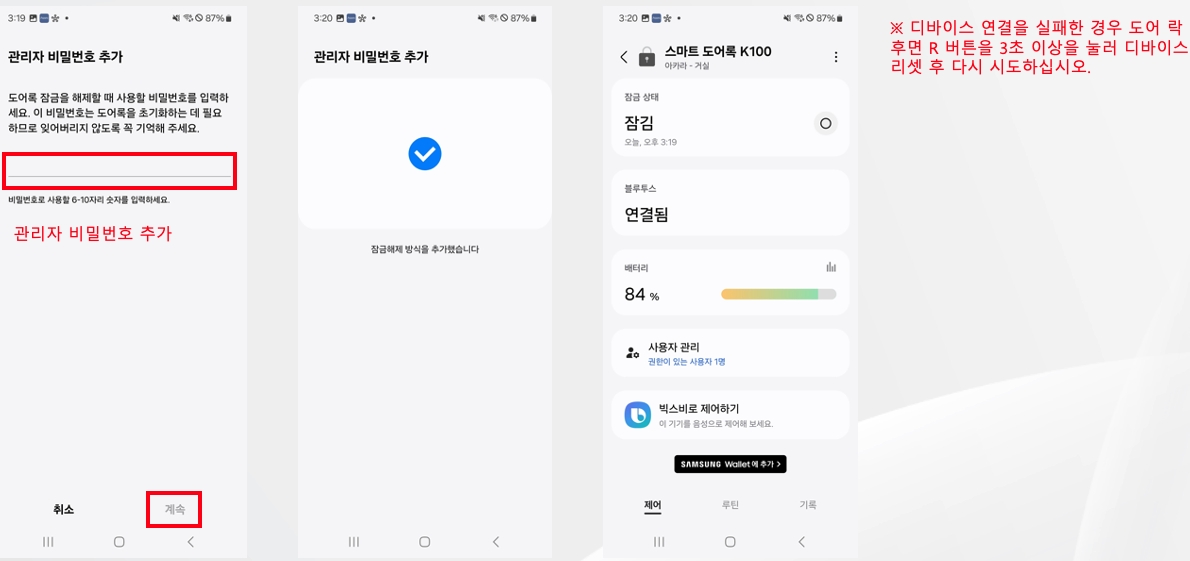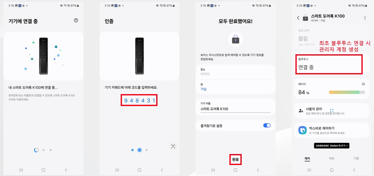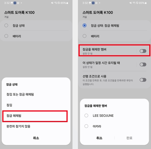 스마트 도어락 K100은 아카라와 SmartThings 플랫폼을 동시에 사용하실 수 없습니다.