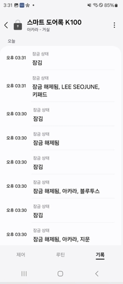 잠금 상태 로그를 확인할 수 있습니다.