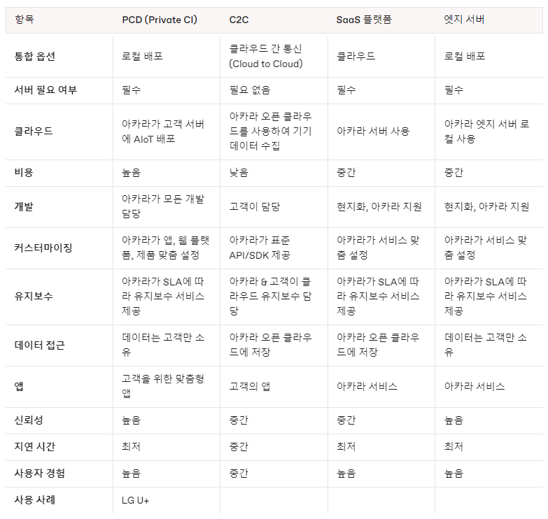 B2B용 소프트웨어 유형비교 (PCD, C2C, SaaS Platform, Edge Server)