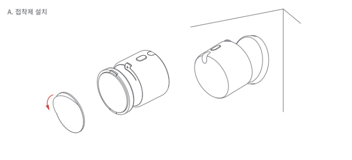 1. 감지 요구사항에 따라 접착제나 자석을 사용하여 벽면, 모서리 또는 천장에 장치를 설치하세요. 장치의 전면이 모니터링하고자 하는 영역을 향하도록 하고, 그에 맞게 각도를 조정하세요.