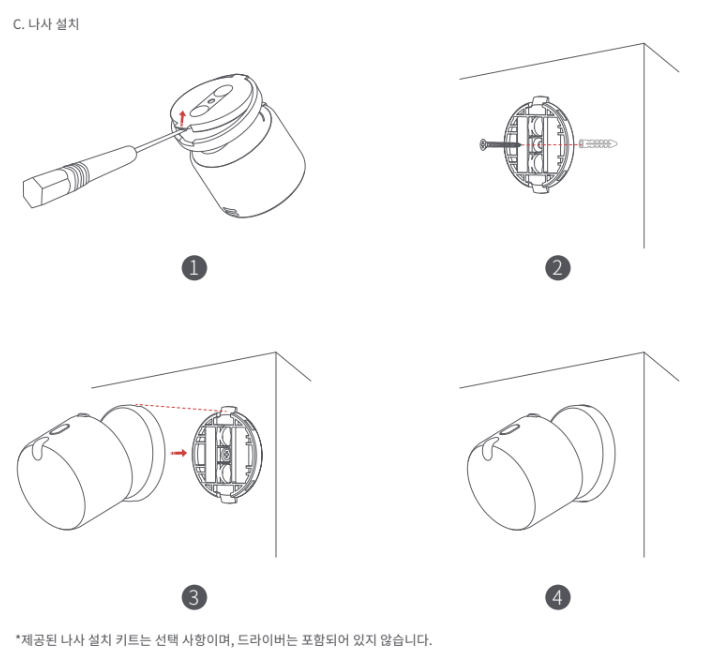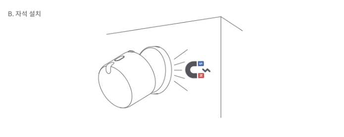 6. 설치 높이가 2미터 미만일 경우 접착제와 자석 부착으로 설치할 수 있습니다. 2미터 이상일 경우 고정 나사를 사용해야 합니다.