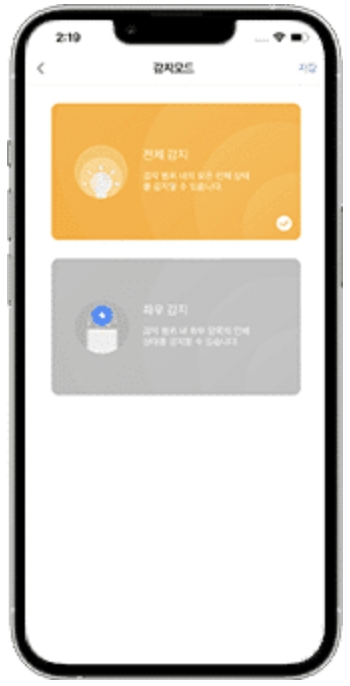 해당 장치는 센서 범위내의 전체 감지와 설정한 일부 영역에 대한 감지가 가능합니다.