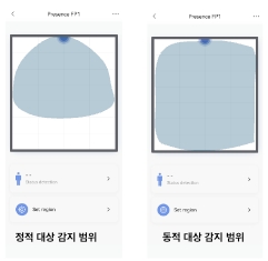 이때부터는 재실에 대한 판단을 지속해야 하므로 아주 미세한 움직임까지 처리하기 시작합니다. 즉, 시점부터 바람에 흔들리는 식물, 커튼, 에어컨, 선풍기, 컴퓨터, 기타 진동하는 물체들이 사람으로 오인식 될 수 있으며, 이를 고려해 제품 설치 위치를 결정하거나 앱에서 제공하는 감지 배제 설정을 진행해야 합니다.
