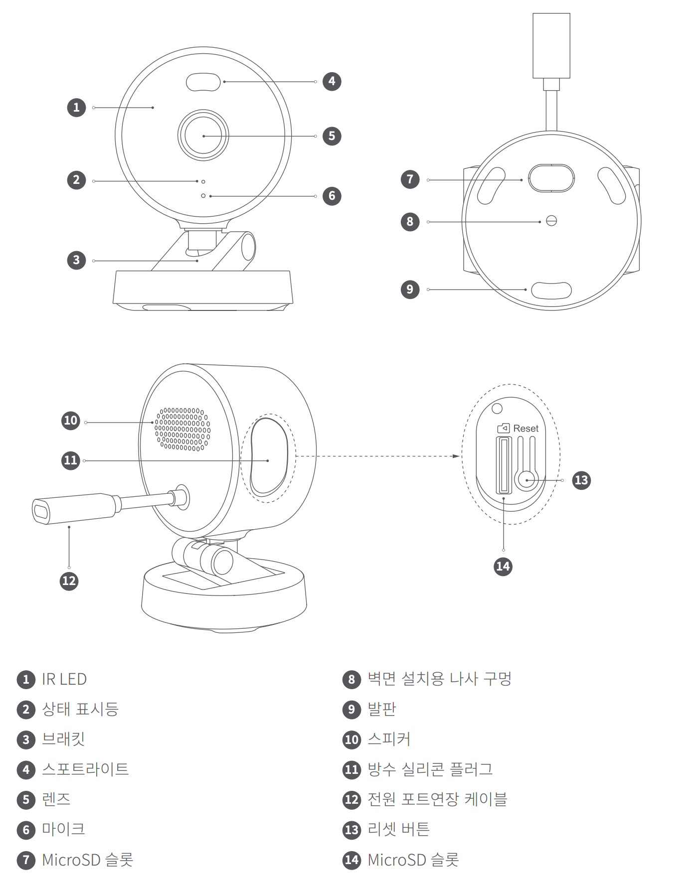 렌즈나 스포트라이트를 가릴 수 있는 위치에 제품을 설치하지 마세요. 렌즈 방향을 조정할 때는 이미지 센서의 하드웨어 손상을 방지하기 위해 직사광선을 피해주세요.