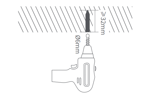 Ø6 mm 드릴 비트를 사용하여 표시된 위치에 따라 구멍을 뚫되, 구멍 깊이는 32 mm 이상이어야 합니다