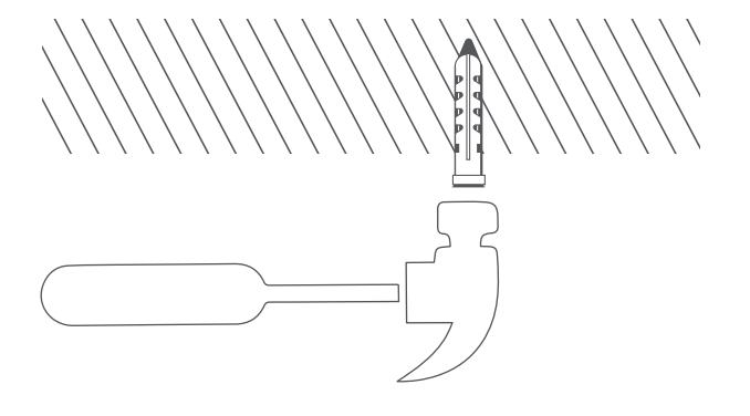 뚫은 구멍에 확장 플러그를 넣고 표면이 평평해지도록 망치로 잘 밀어 넣습니다.