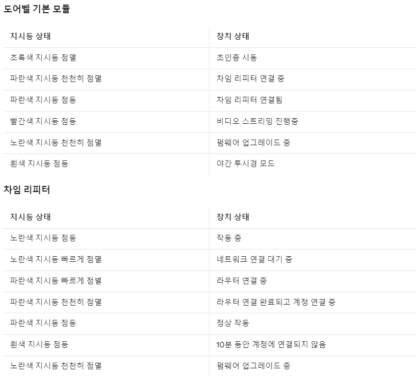 도어벨과 차임리피터를 공장 초기화한 후 다시 설치하시면 문제를 해결하실 수 있습니다.