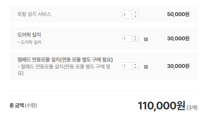 ▲ 설치 서비스 구매 시 선택 항목, 도어락이 이미 설치되어 있는 경우 월패드 연동 모듈 설치만 선택