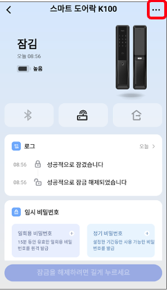잠금 해제 결과가 될 스마트 도어락 K100을 선택합니다.