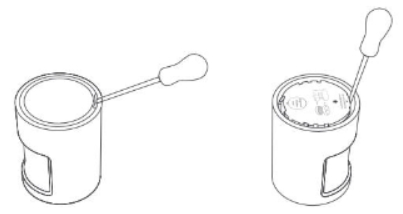 (1) 드라이버로 배터리 캡의 틉에서 캡을 제거한 다음 배터리 칸을 드라이버로 넣고 배터리 칸을 제거 하십시오.