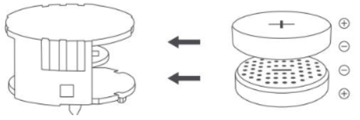 (2) 배터리 칸에 두 개의 새로운 CR2450 버튼 배터리를 삽입해 주십시오. 다음과 같이 극성이 맞는 확인해 주십시오.
