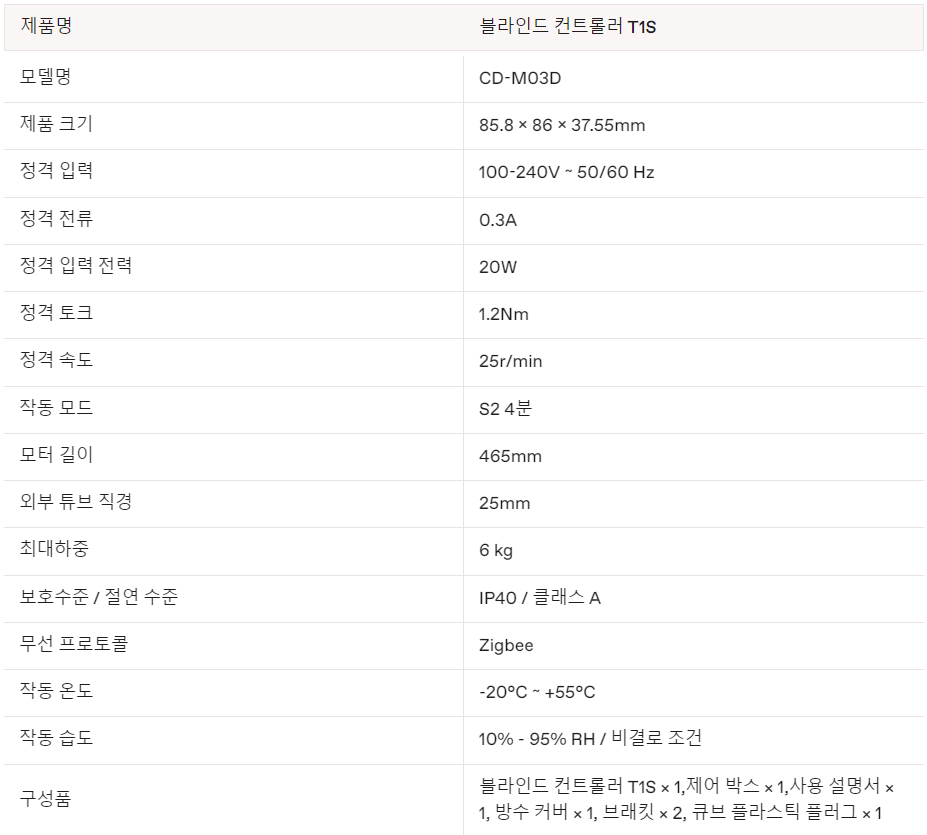 본 제품의 최소 파이프 지름은 25mm이며 적절하게 마감된 블라인드와 함께 사용해야 합니다.