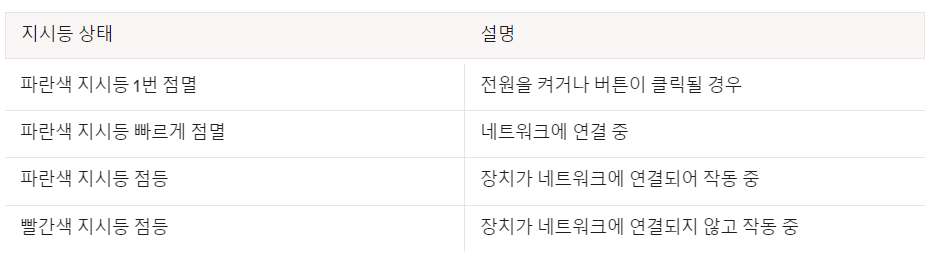 연결에 실패했거나 다시 연결해야 하는 경우 파란색 지시등이 켜질 때까지 재설정 버튼을 5초간 눌렀다가 놓습니다. 파란색 지시등이 계속해서 깜빡일때 다시 연결을 시도 하세요.
