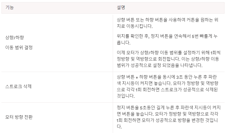 전기 작업을 포함하는 본 제품의 설치 프로세스는 강한 전류를 사용하므로 전문 커튼 설치업체에게 명세에 따라 설치를 맡기십시오.