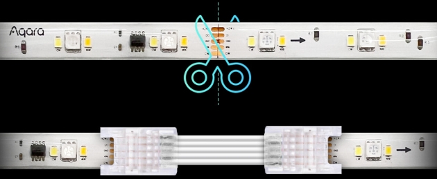 기본 LED 스트립 T1의 스트립 길이는 2미터입니다. 여기에서 1미터 길이의 연장키트를 총 10미터 길이 (기본 LED 스트립 T1 2미터 포함)까지 연결할 수 있습니다. 최종 길이를 맞추기 위해서는 절단이 필요할 수 있는데 이 경우 20cm 단위로 자를 수 있습니다.